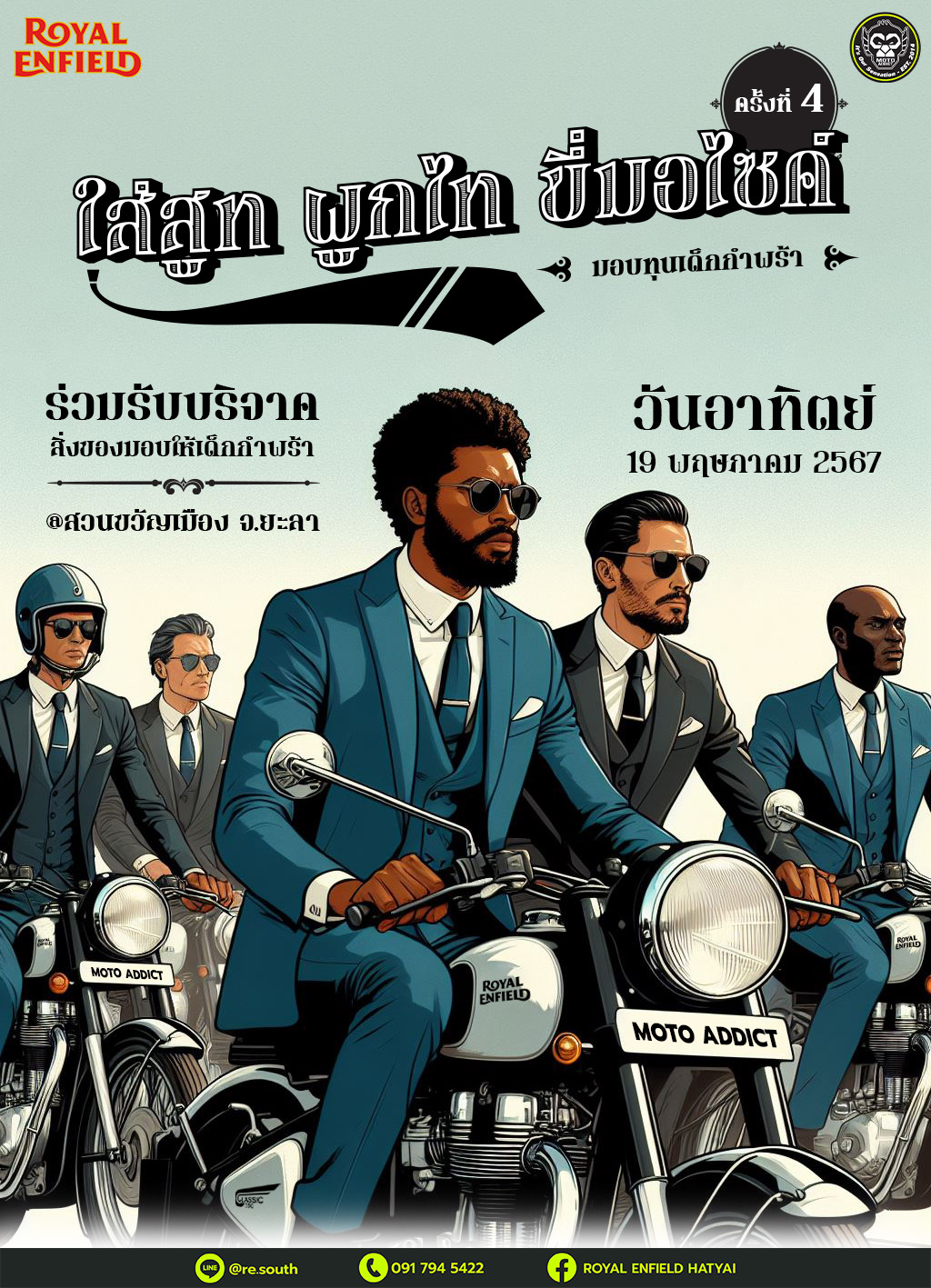 ขอเชิญชวน Biker ชาว Royal Enfield ทุกท่าน เข้าร่วมกิจกรรม ”ใส่สูท ผูกไท ขี่มอไซค์ เพื่อเด็กกำพร้า”